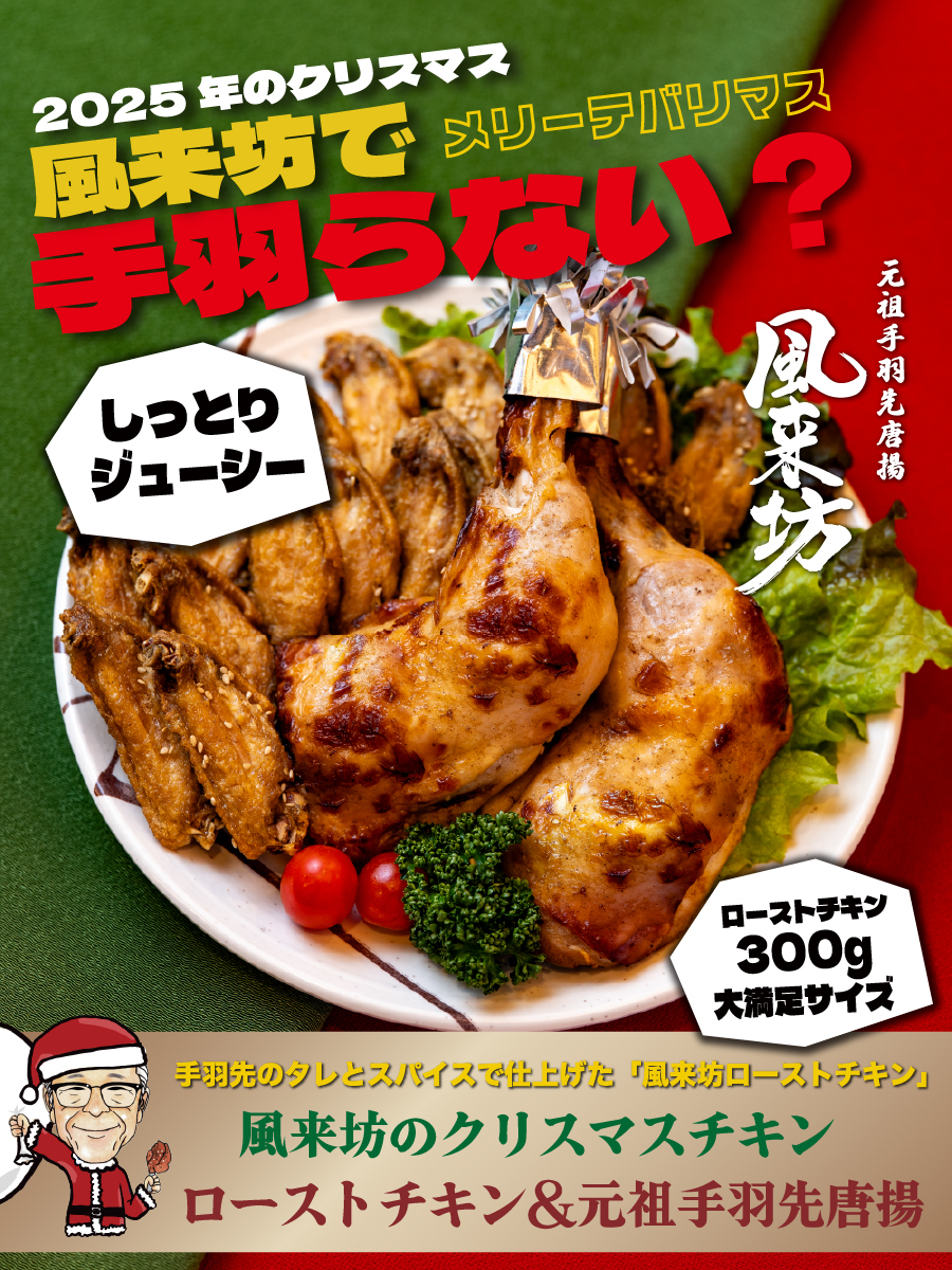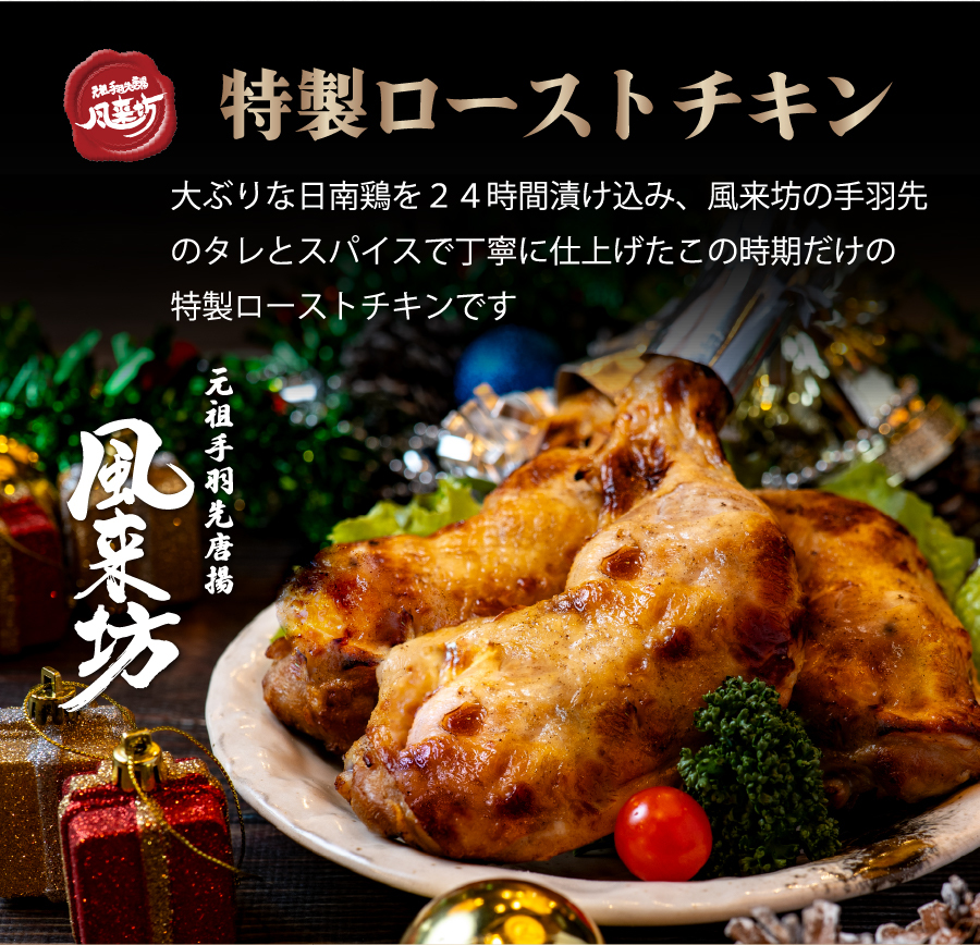 ■数量限定・クリスマス気分を高めるチャンス! 風来坊のクリスマス限定ローストチキンセットは、数量限定でのご用意です。この機会を逃すと手に入らないかもしれません。特別な日をさらに特別にするため、ぜひご利用ください!