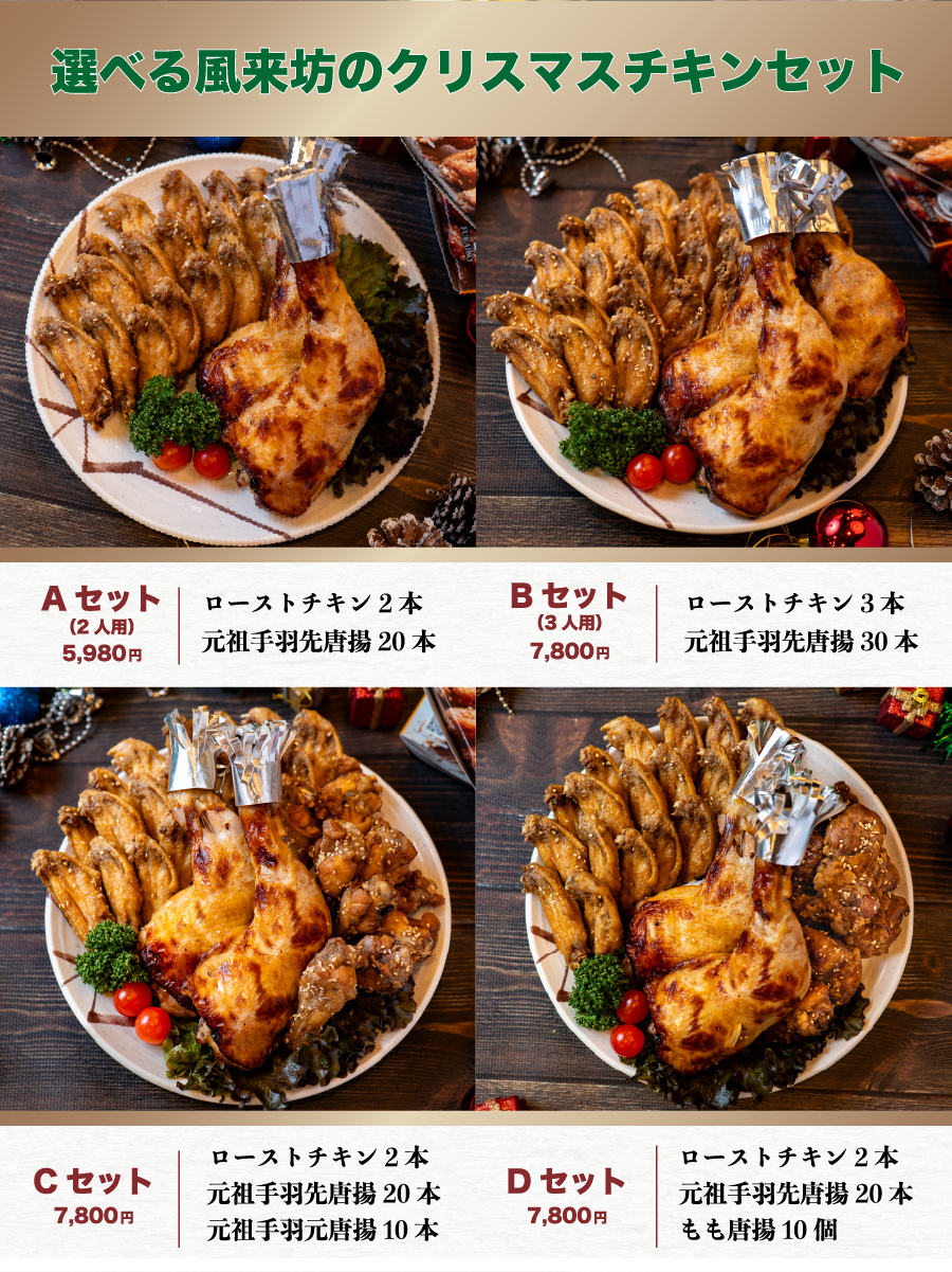 Cセット:元祖手羽先唐揚 20本、クリスマスローストチキン 2本、手羽元唐揚 10本